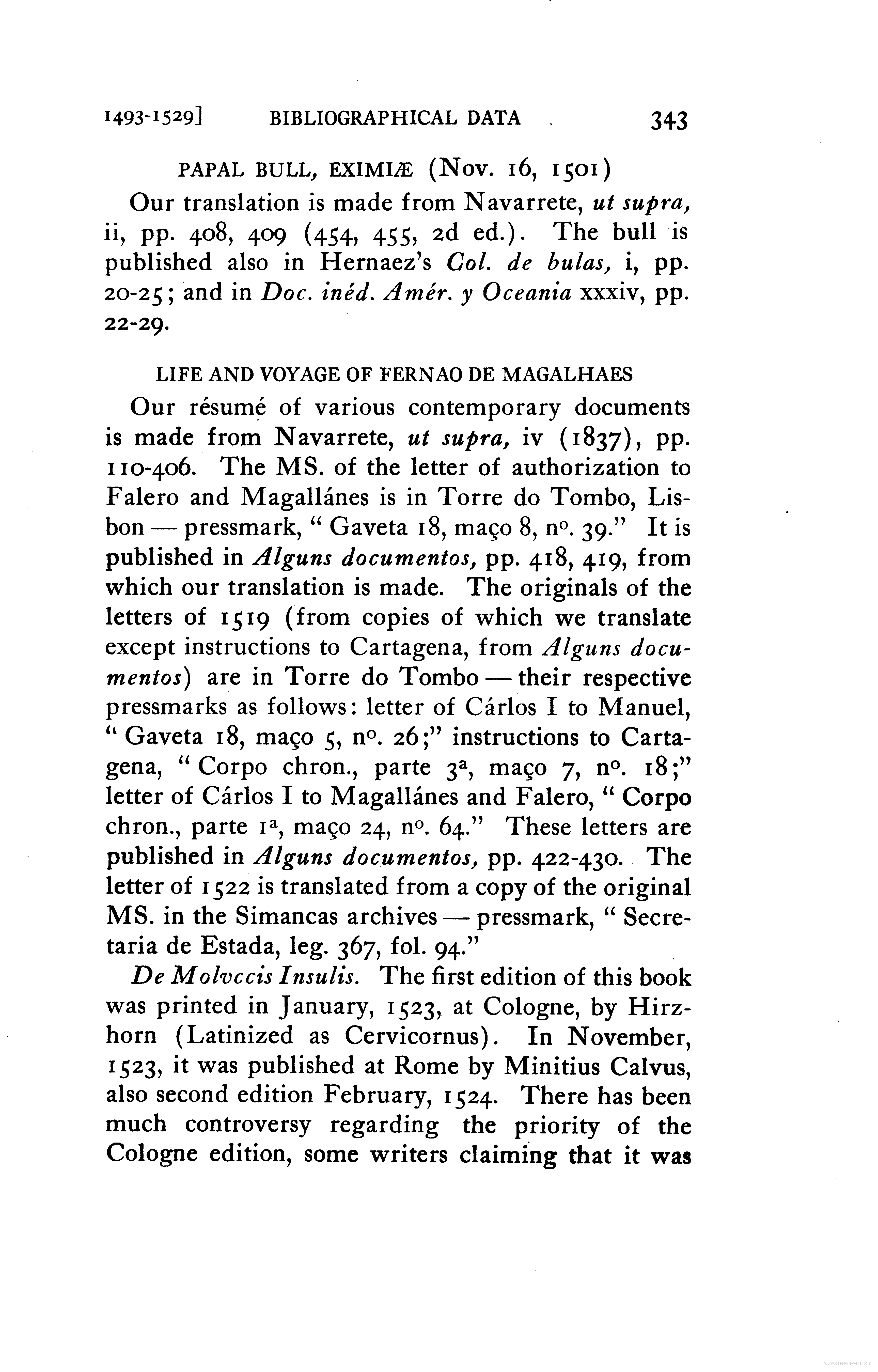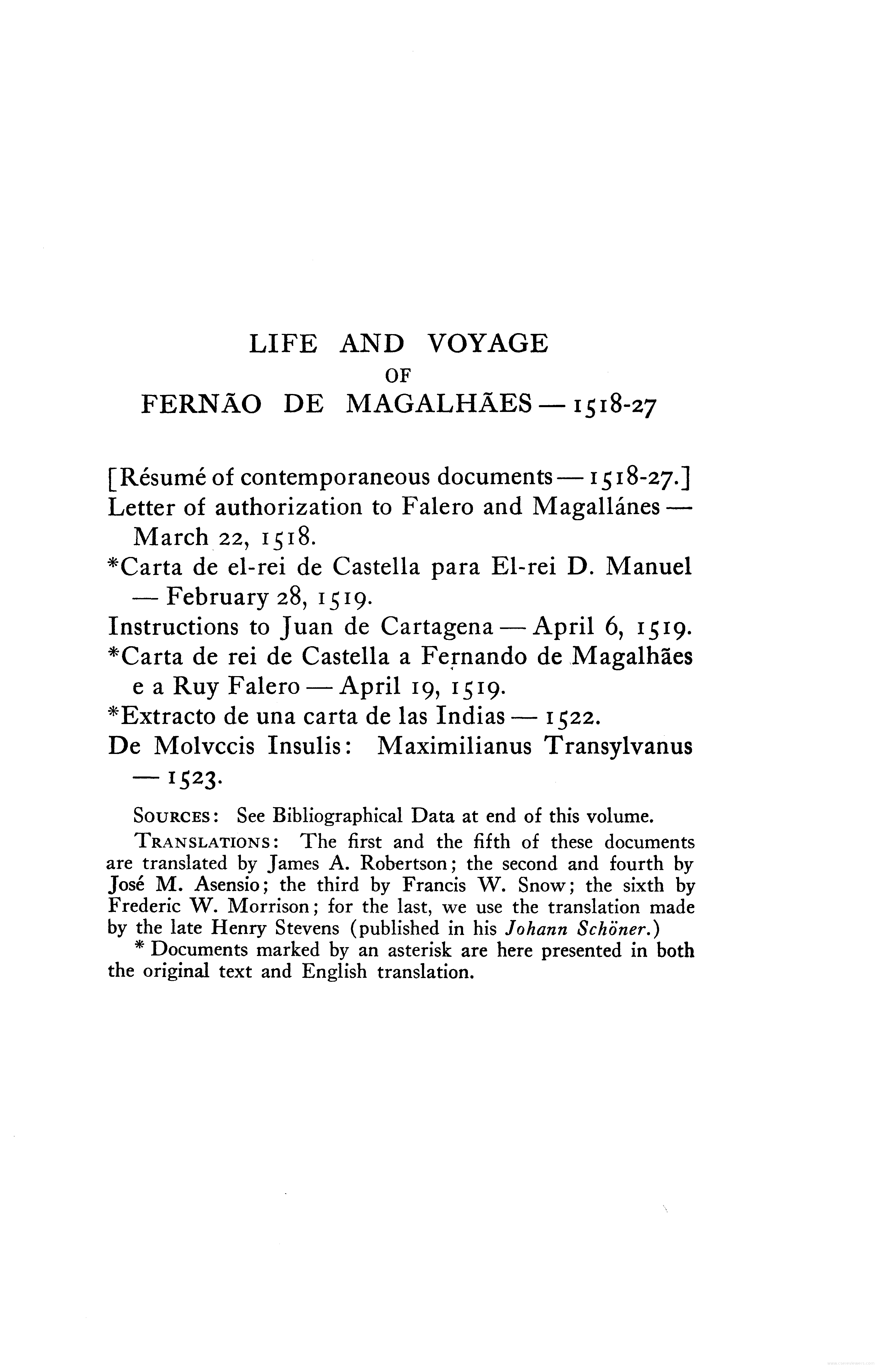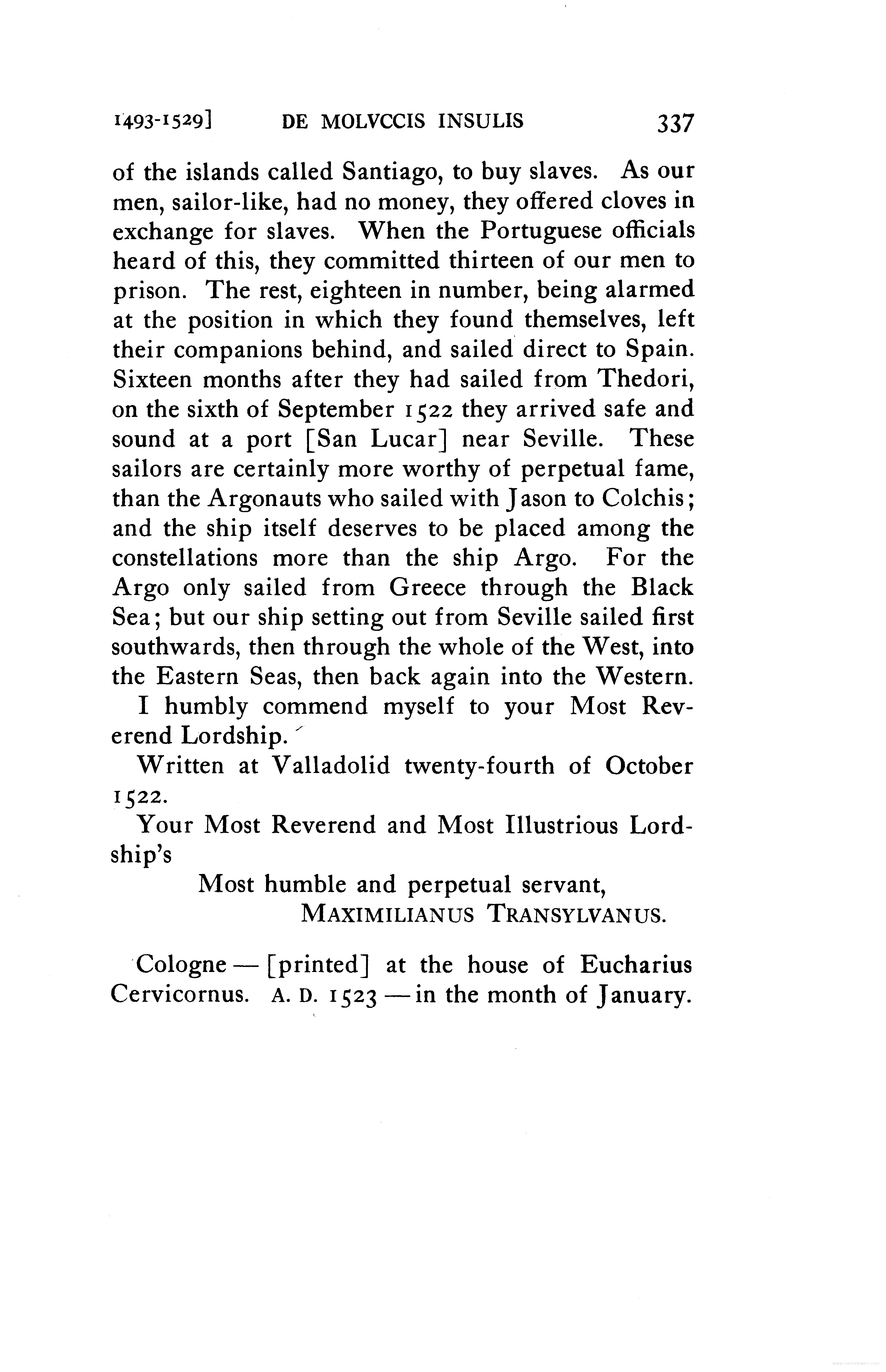 - Letter to the Cardinal of Salzburg, describing Magallanes voyage to the Moluccas