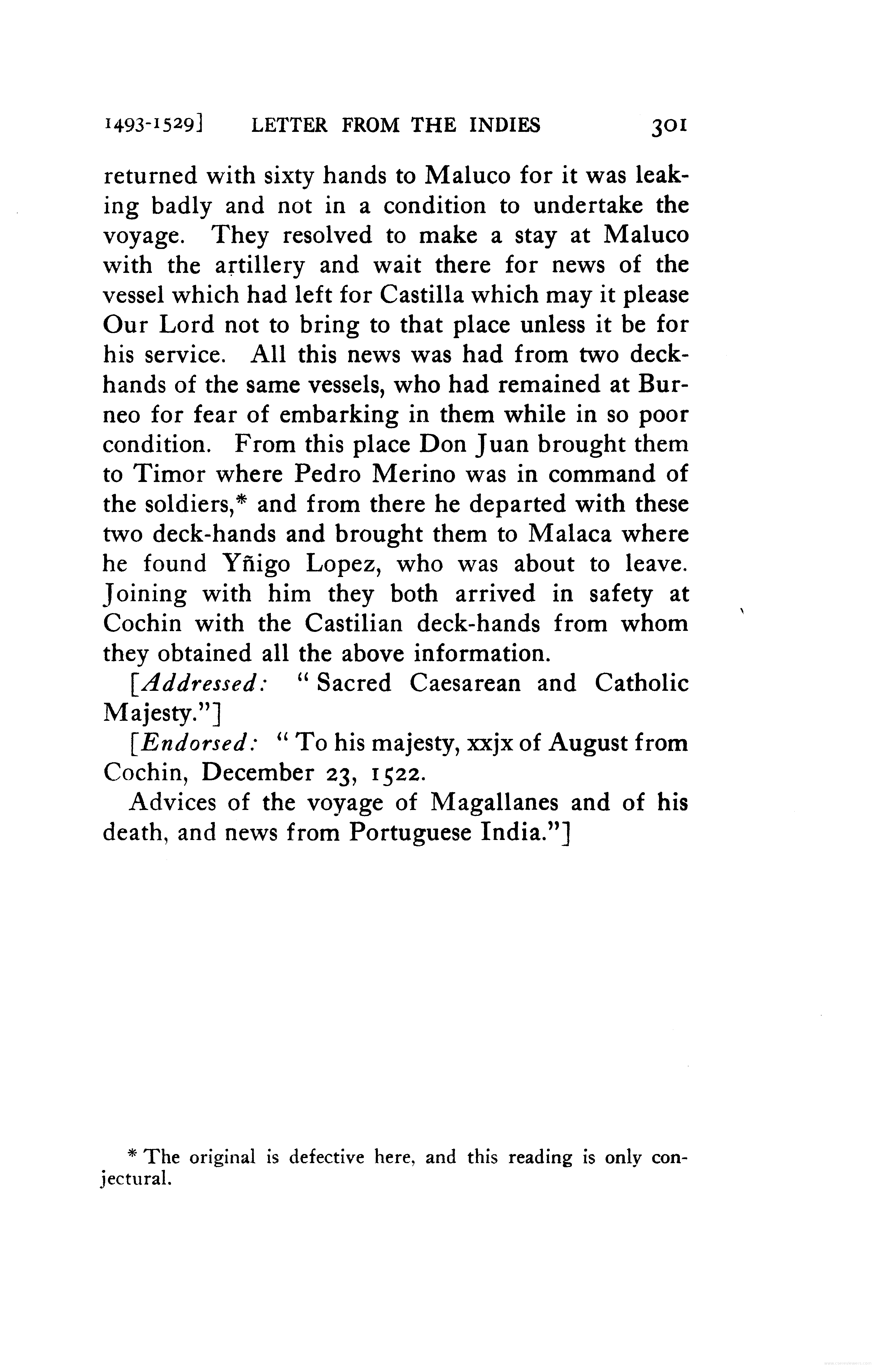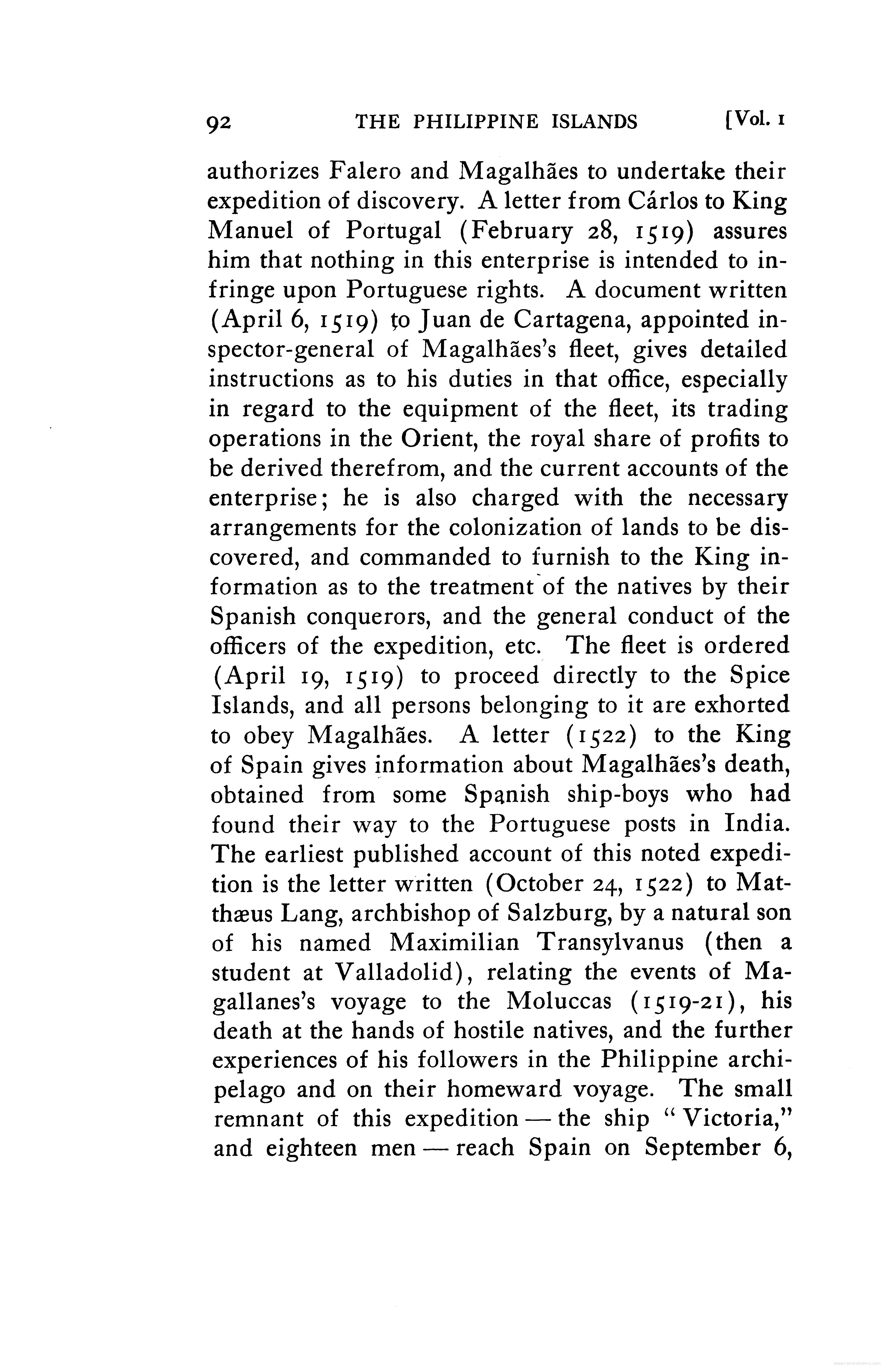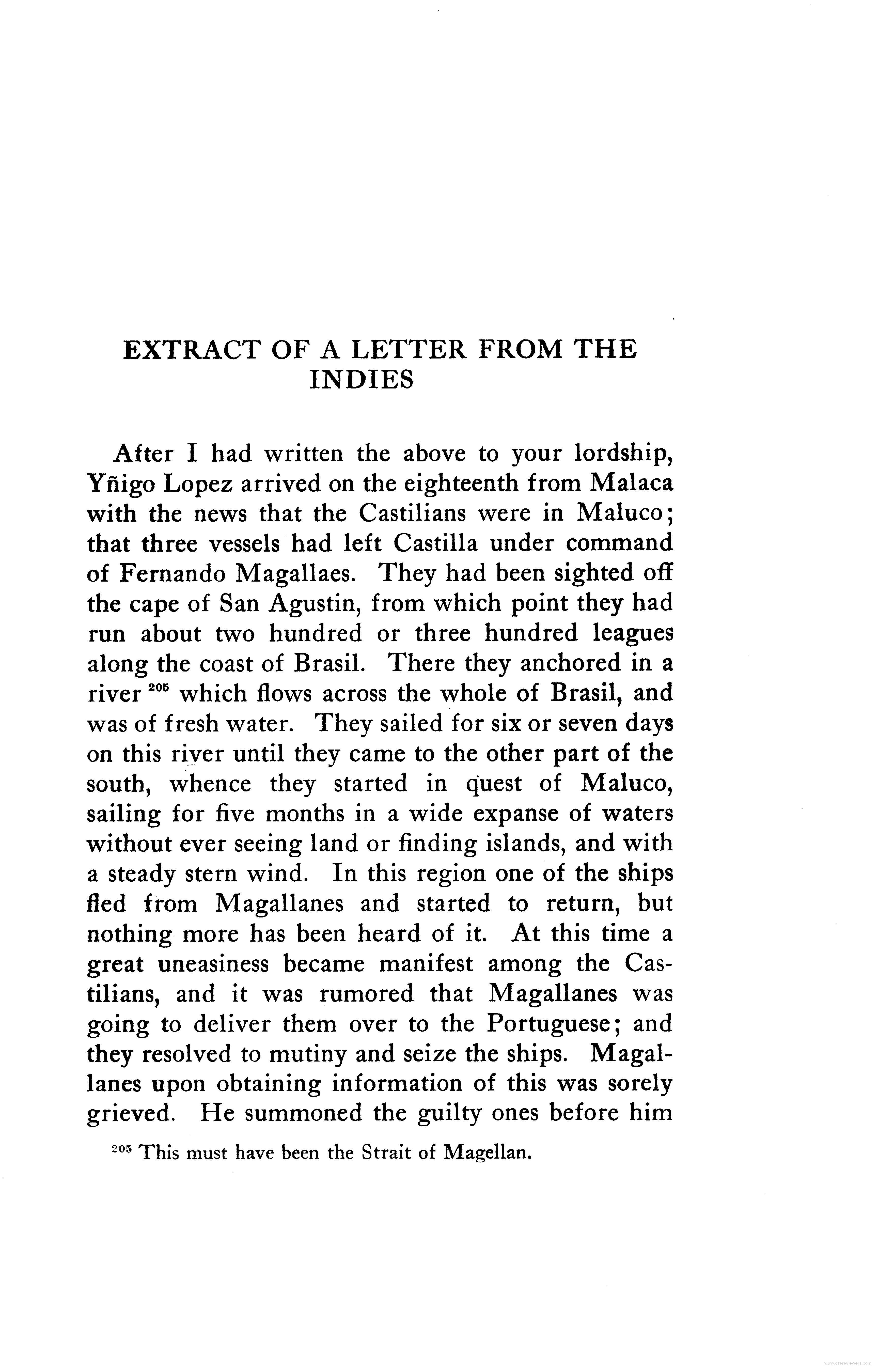 - Letter to the Cardinal of Salzburg, describing Magallanes voyage to the Moluccas