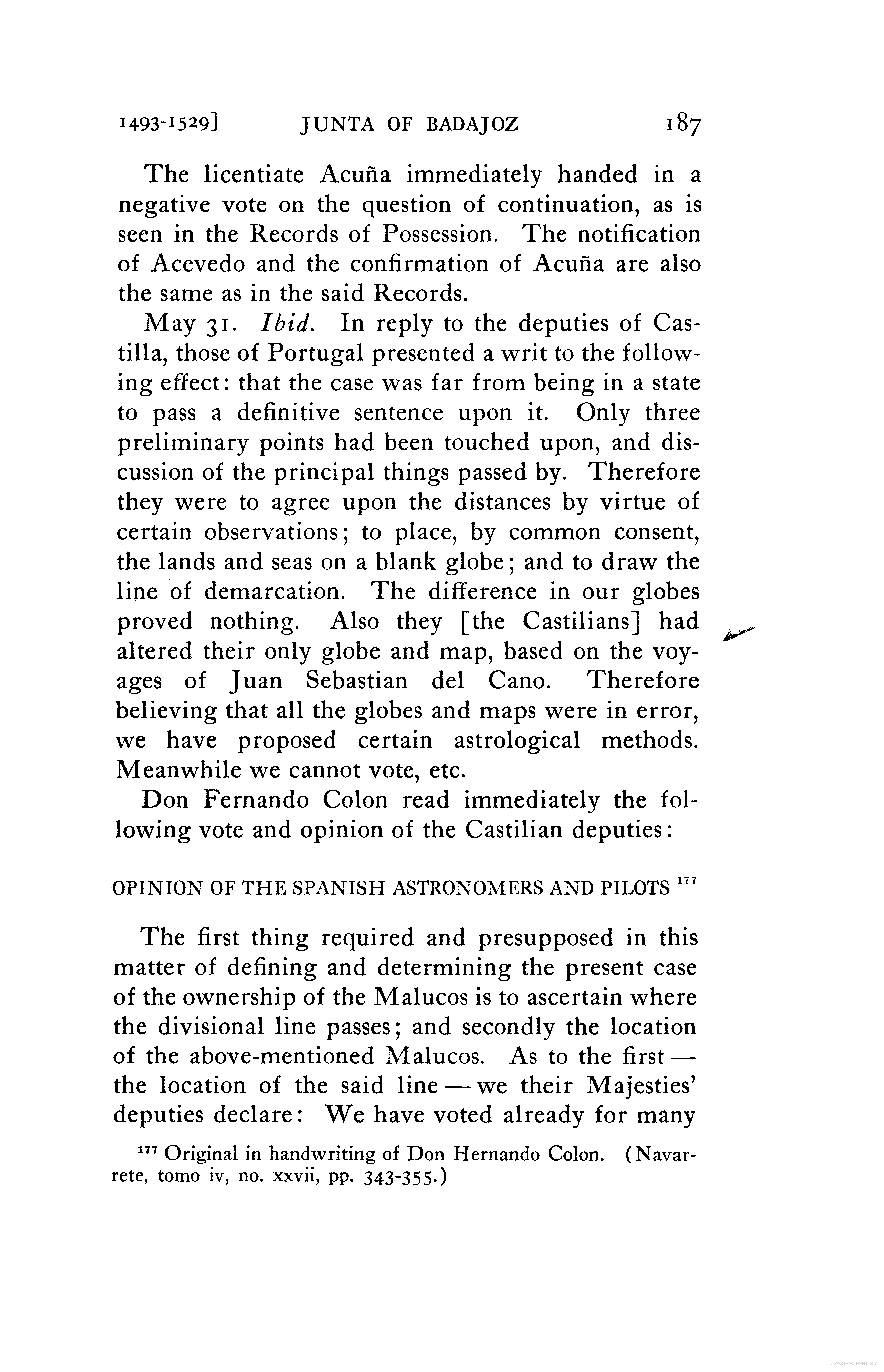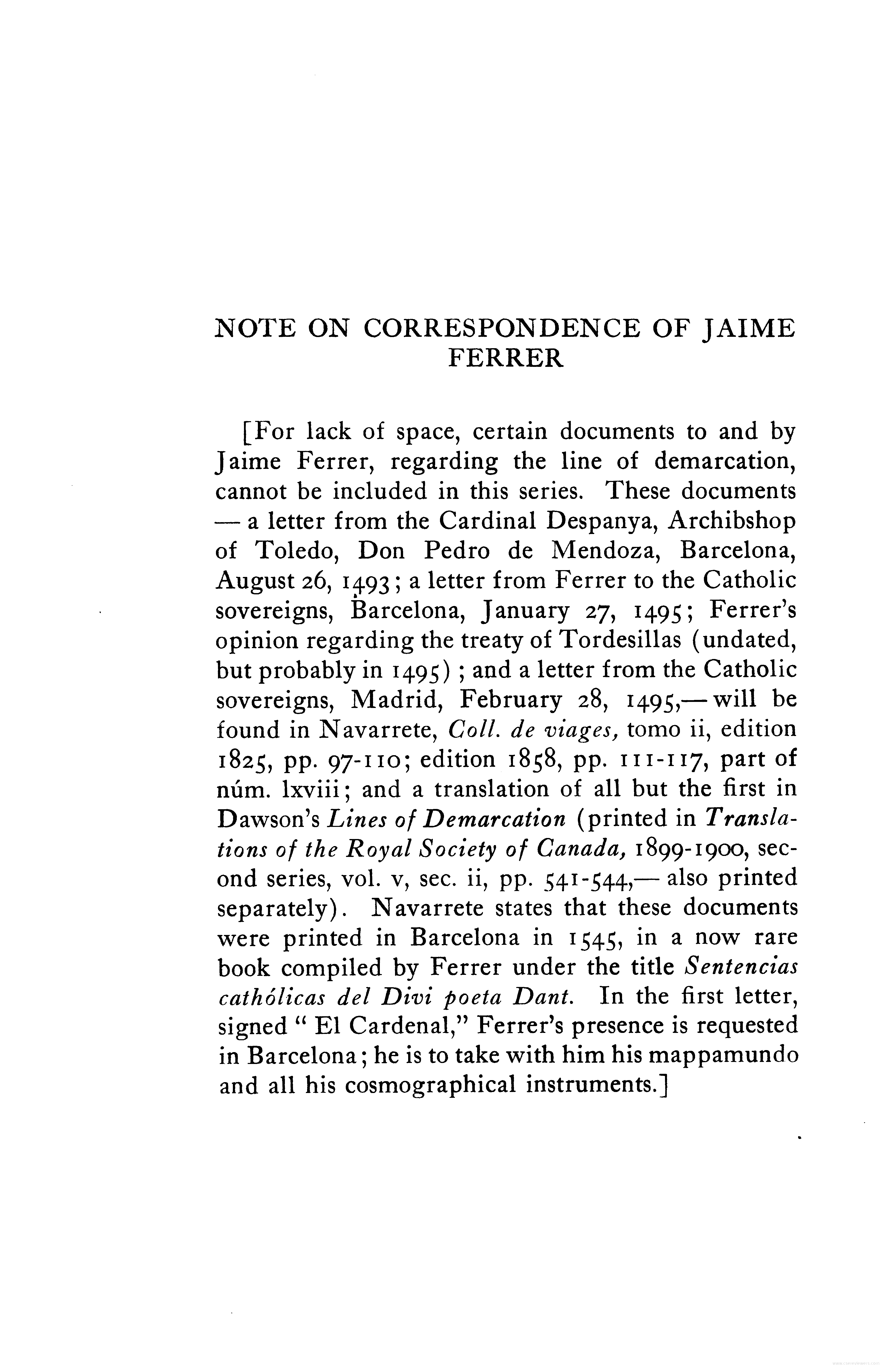 - Note on correspondence of Jaime Ferrer regarding the Line of Demarcation