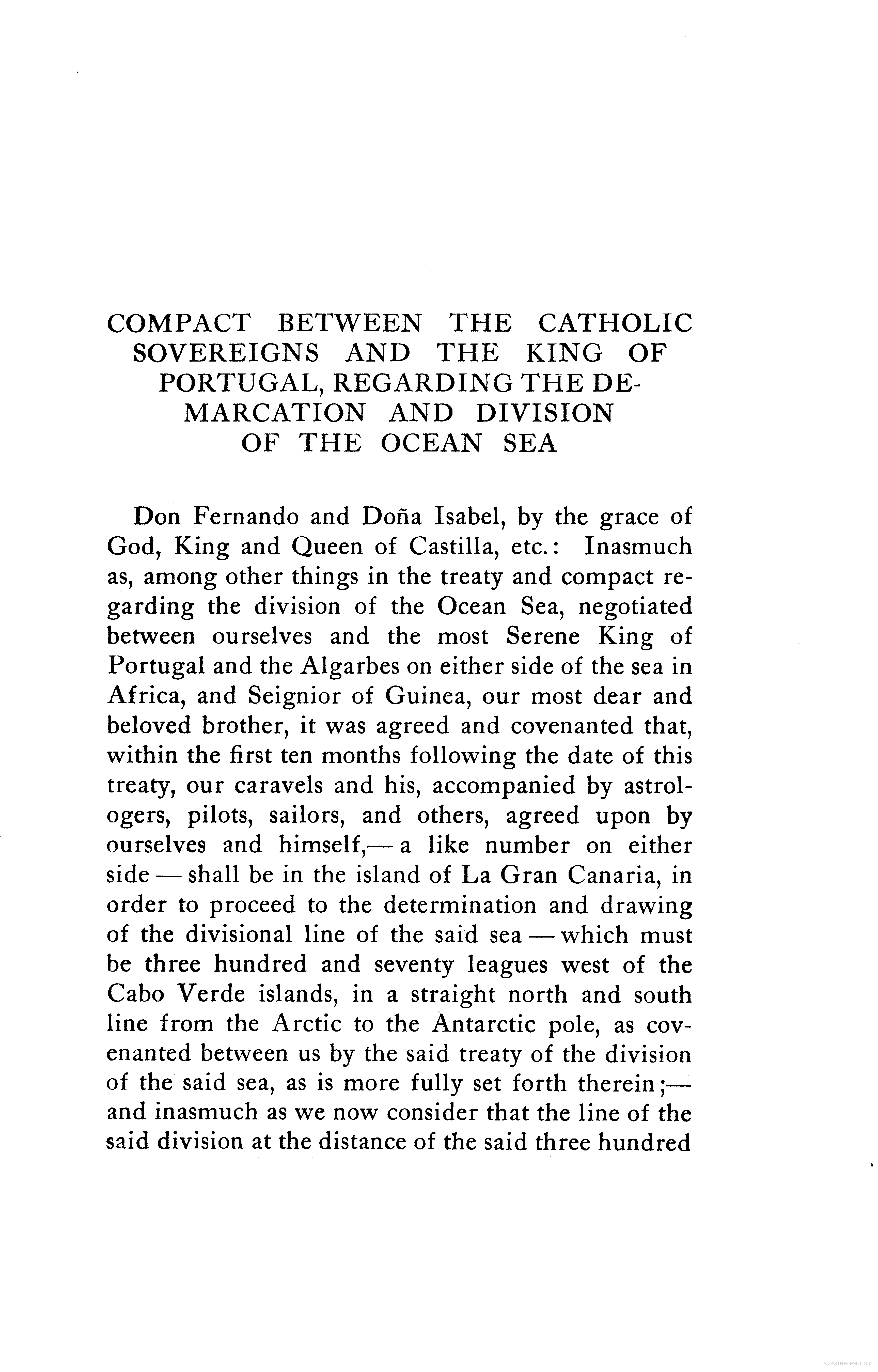 - Compact between the Catholic Sovereigns and the King of Portugal