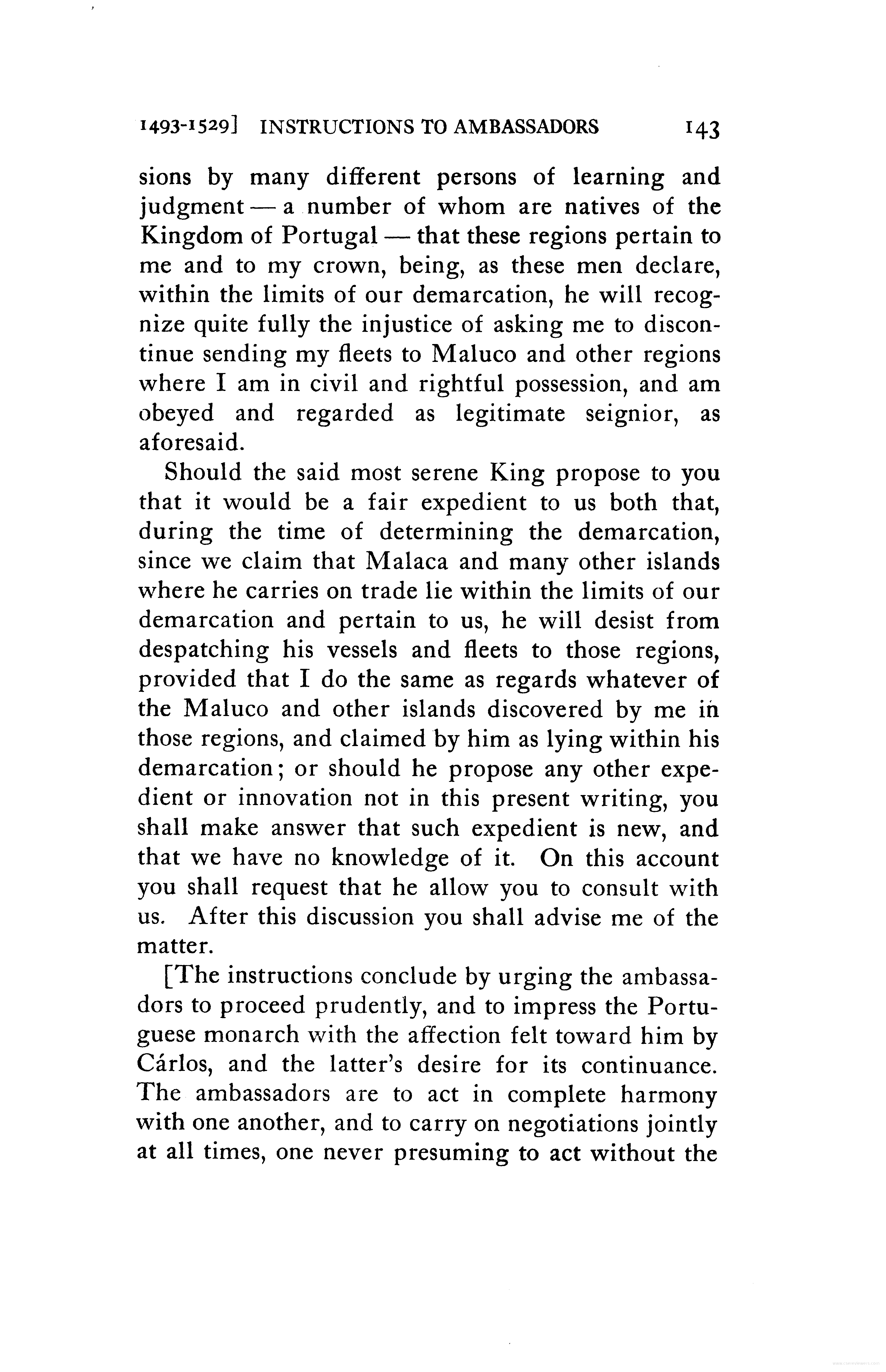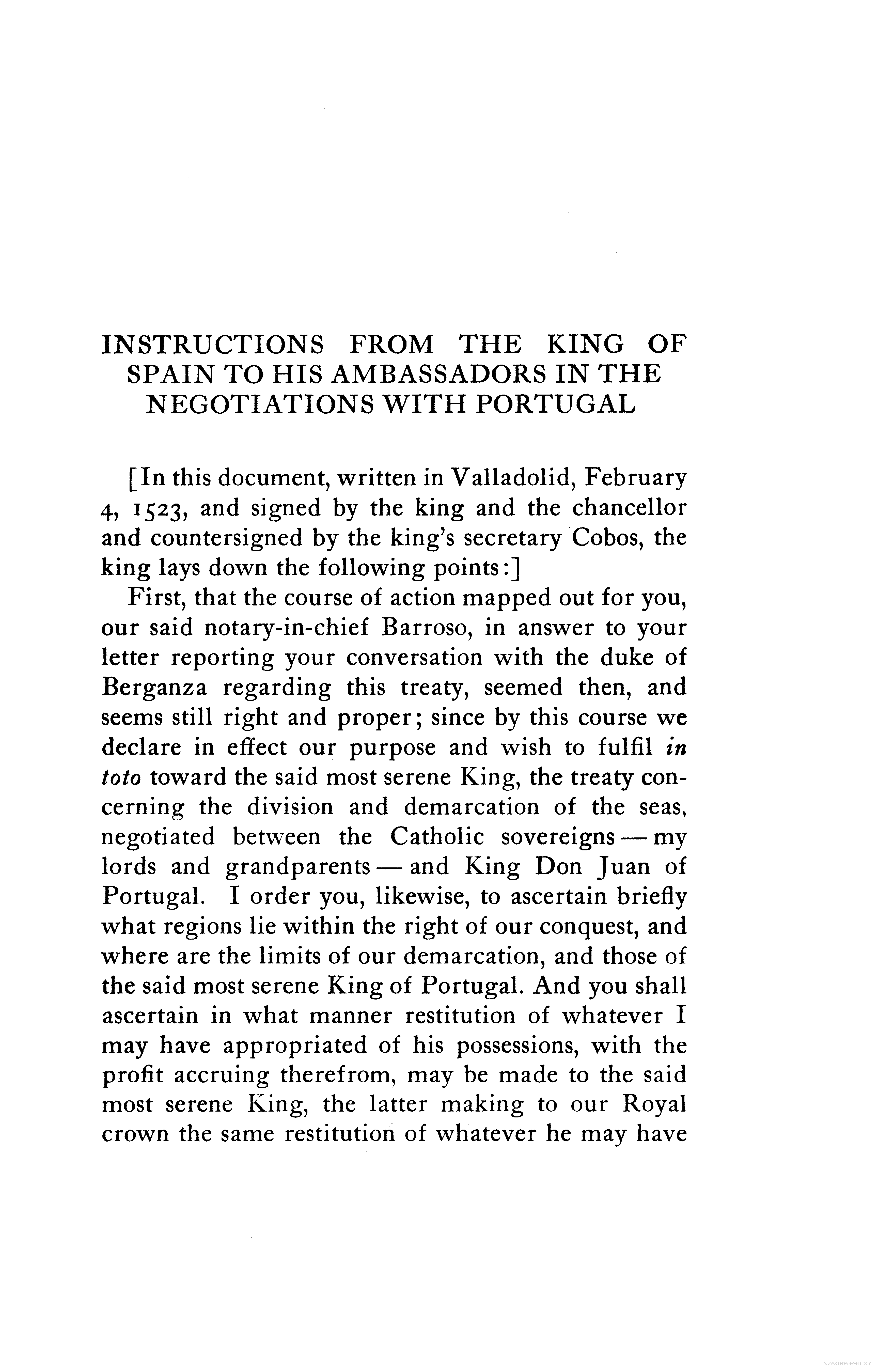 - Instructions from the King of Spain to his ambassadors