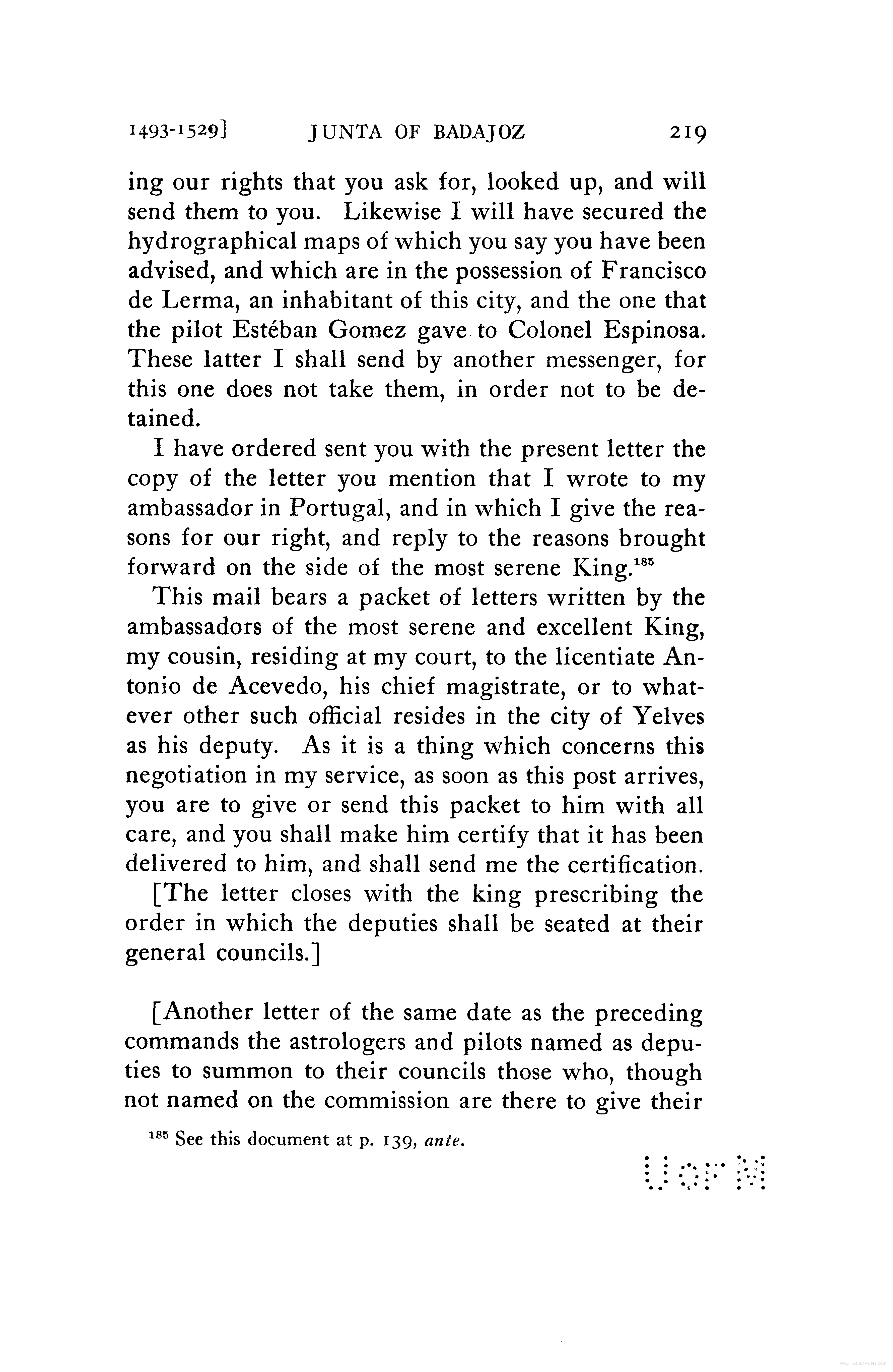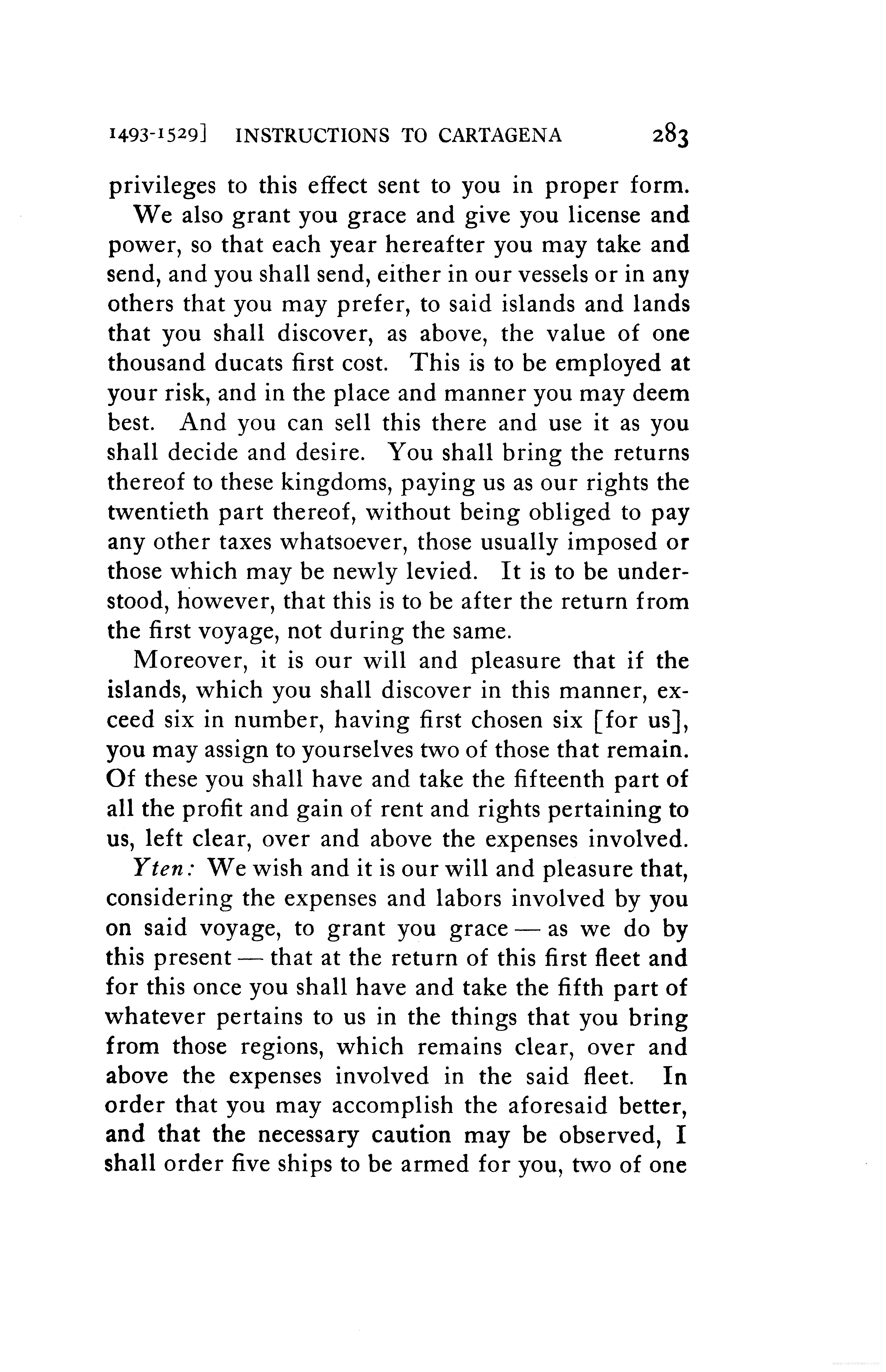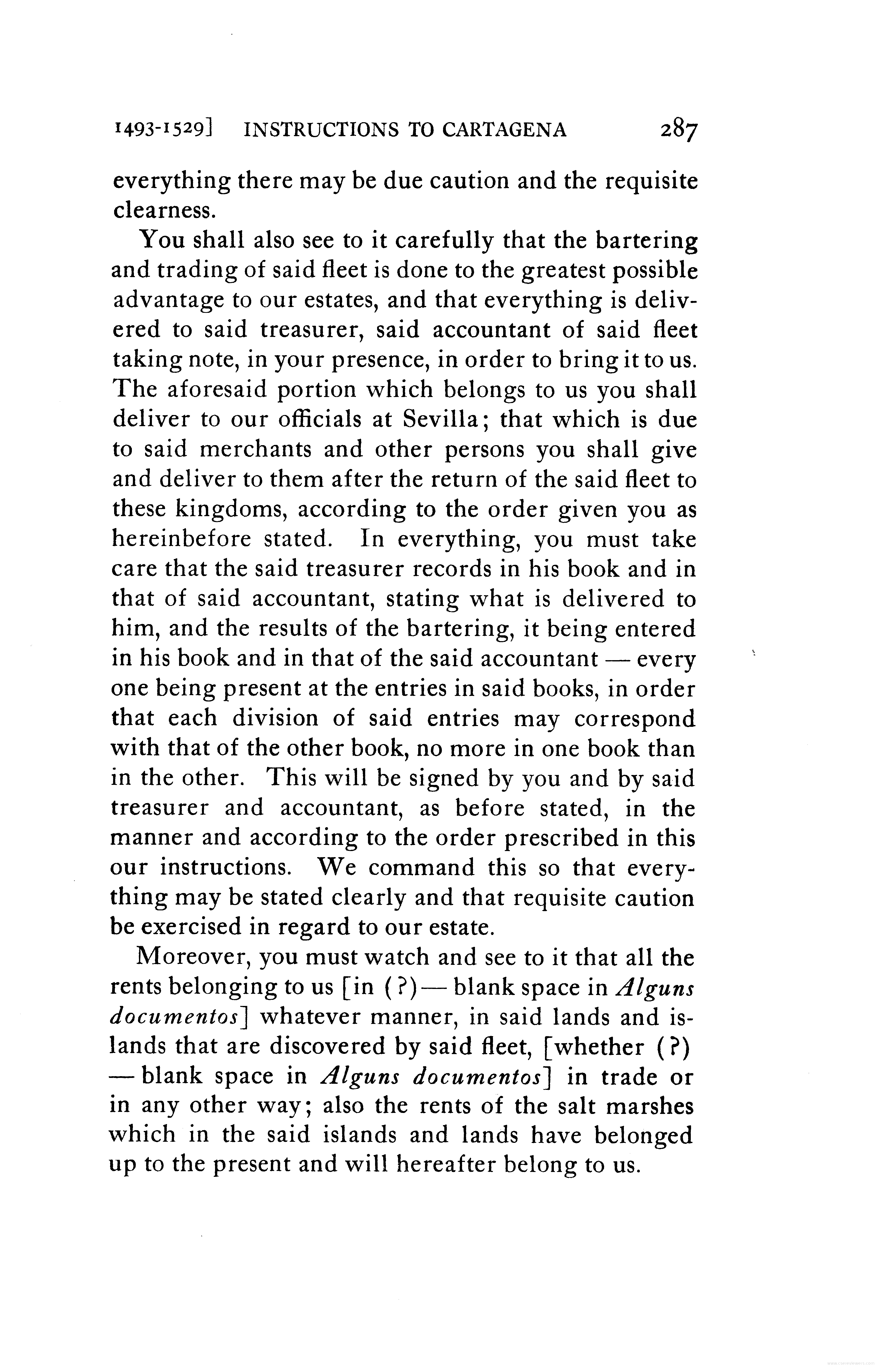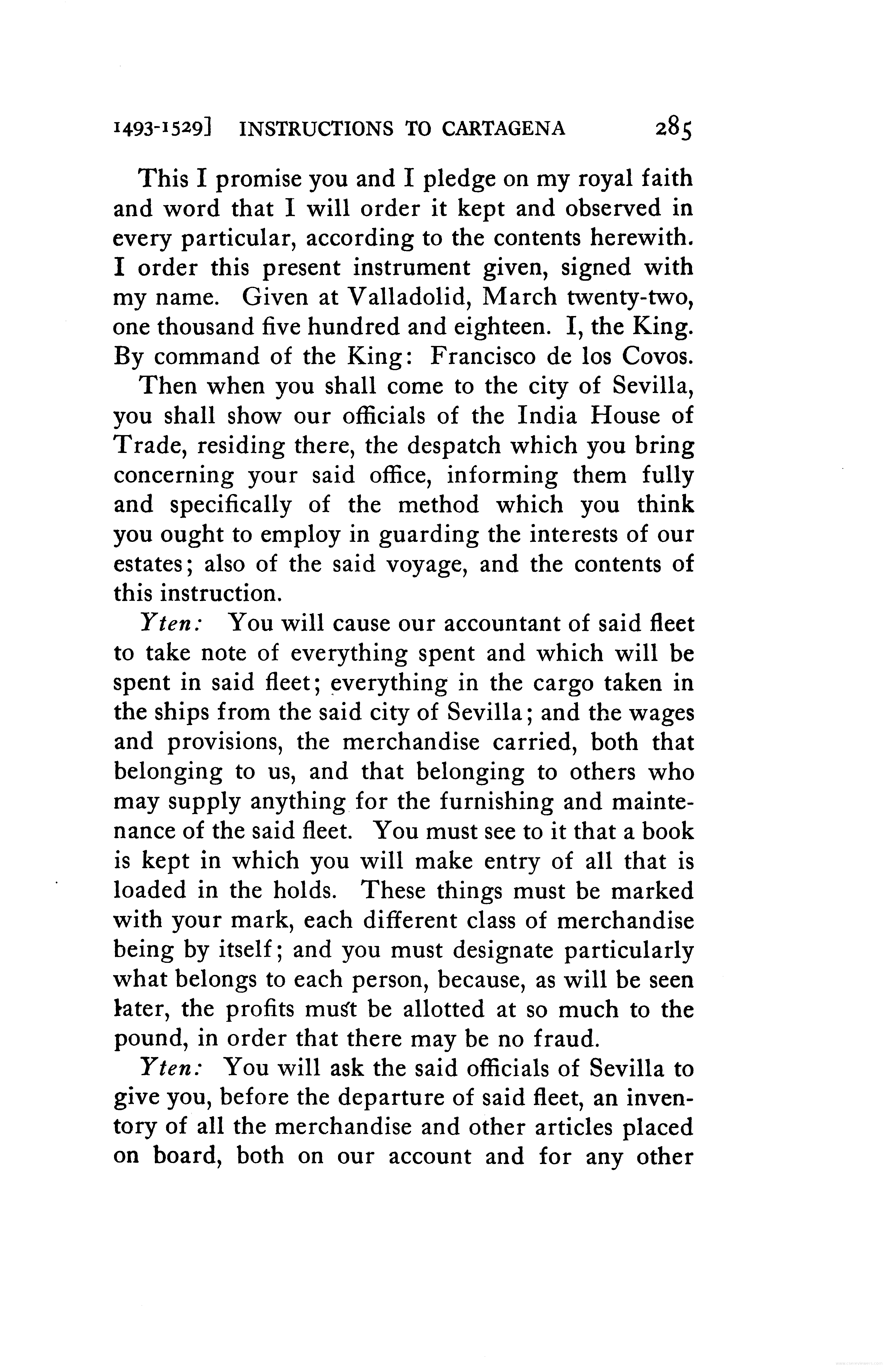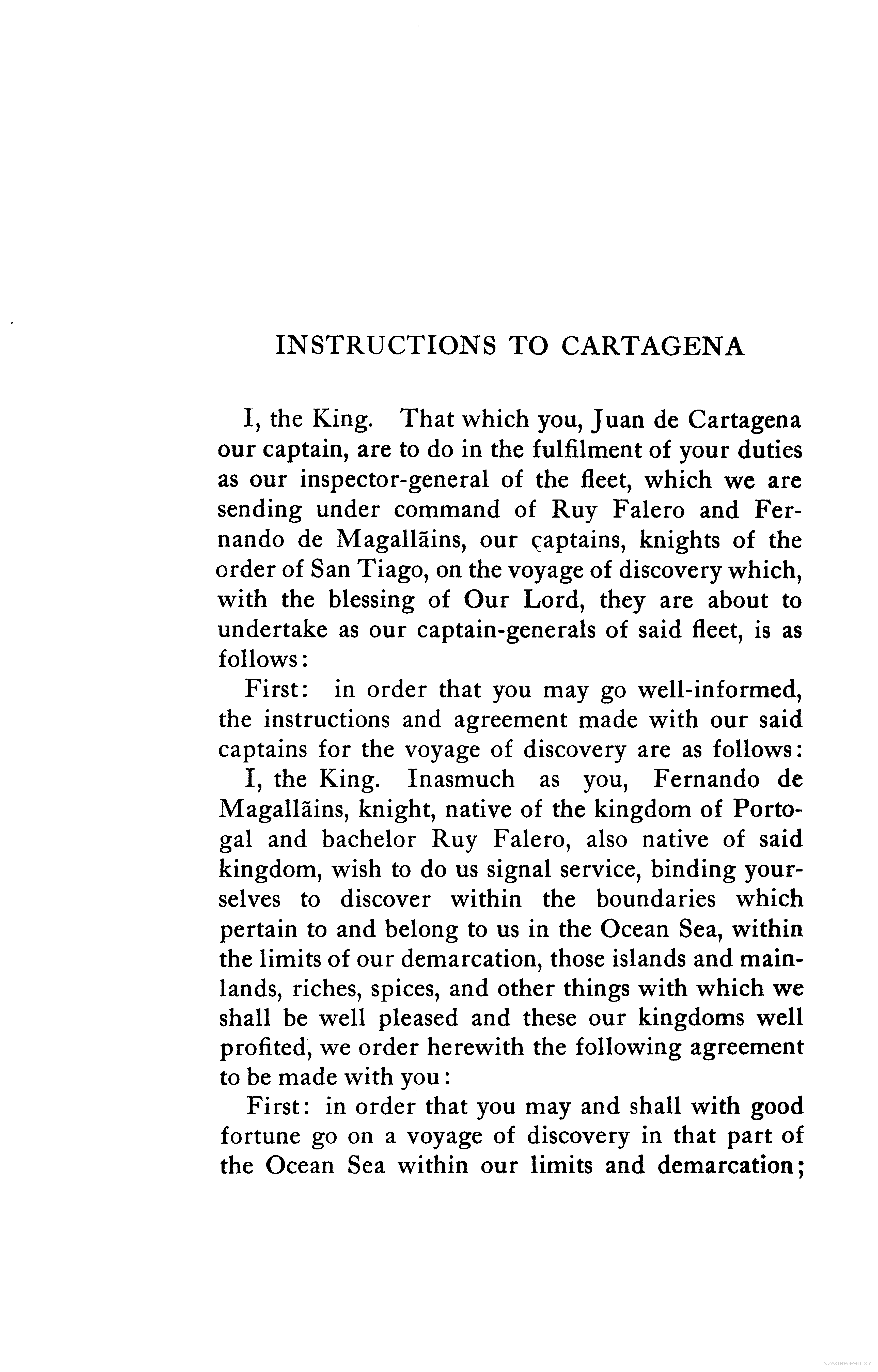 - Instructions to Juan de Cartagena