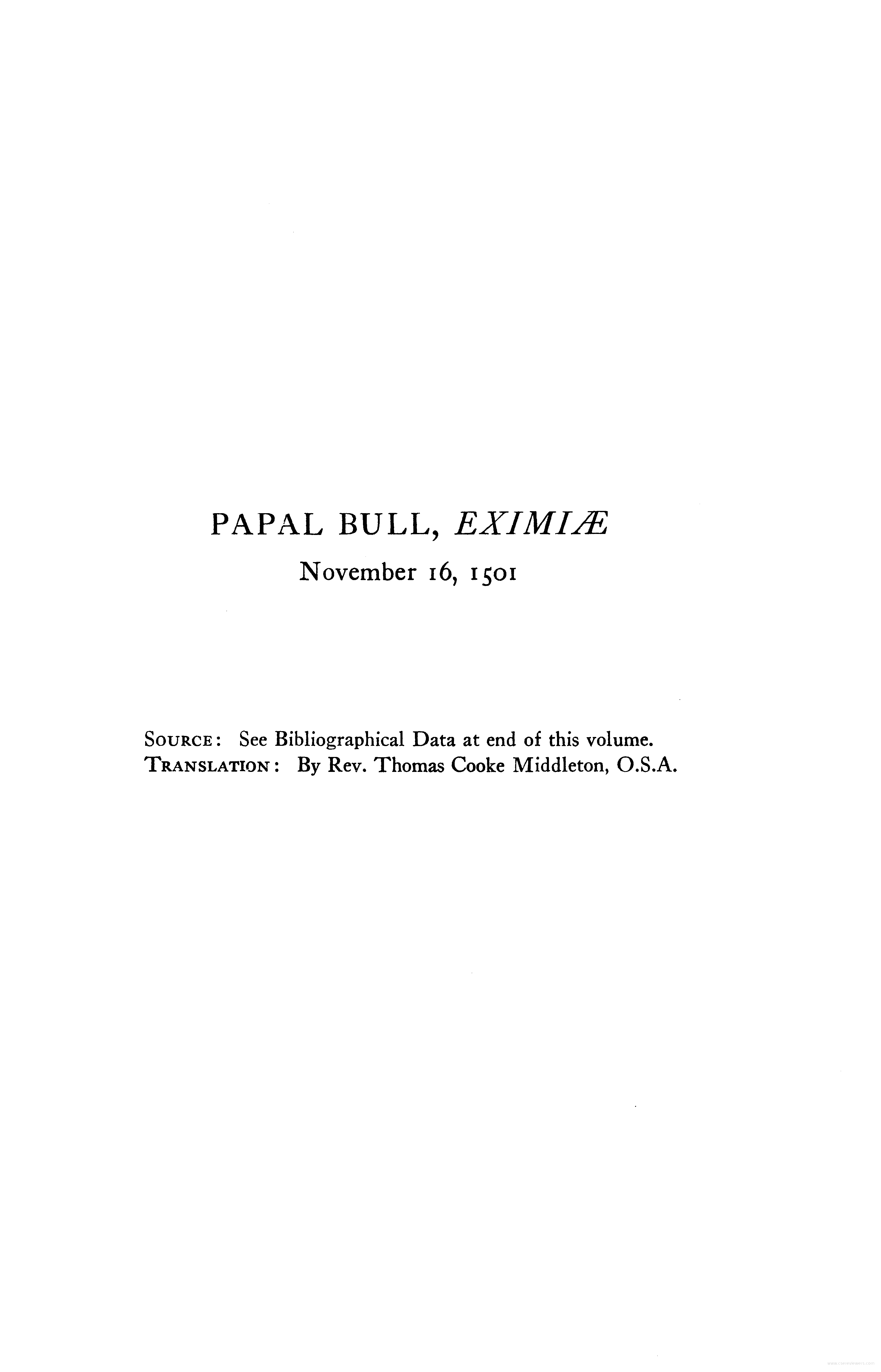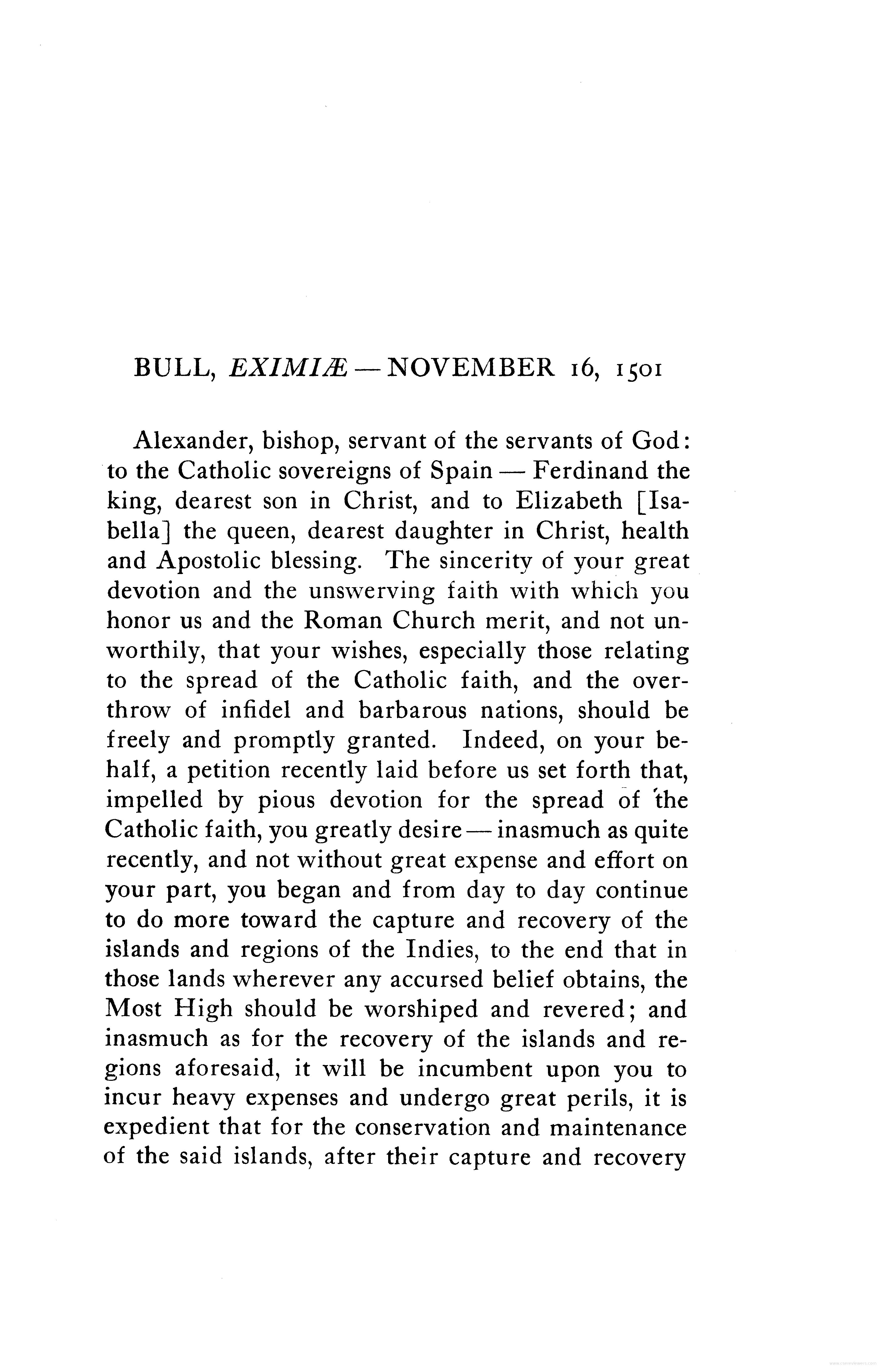 - Papal Bull of 1501