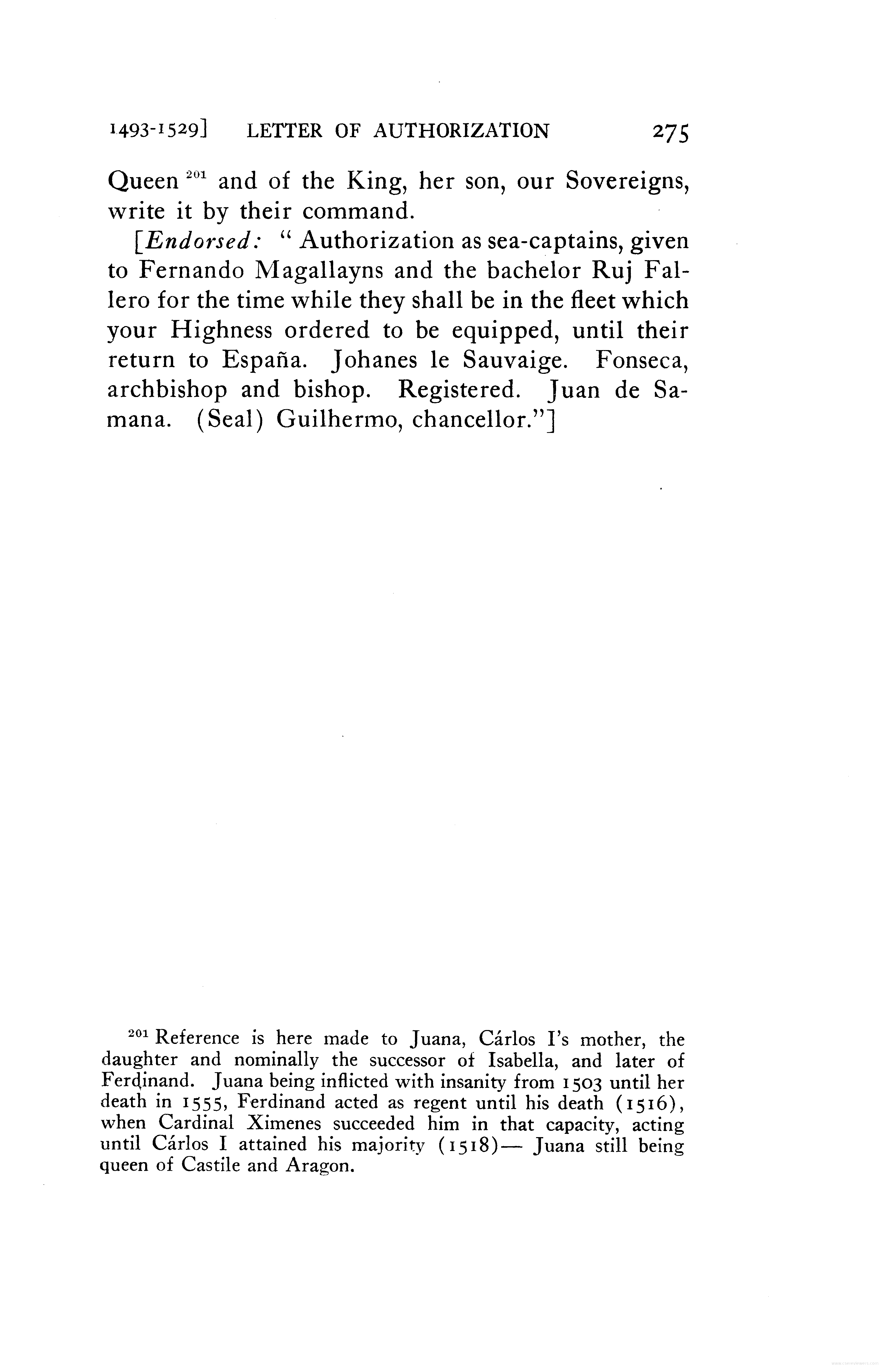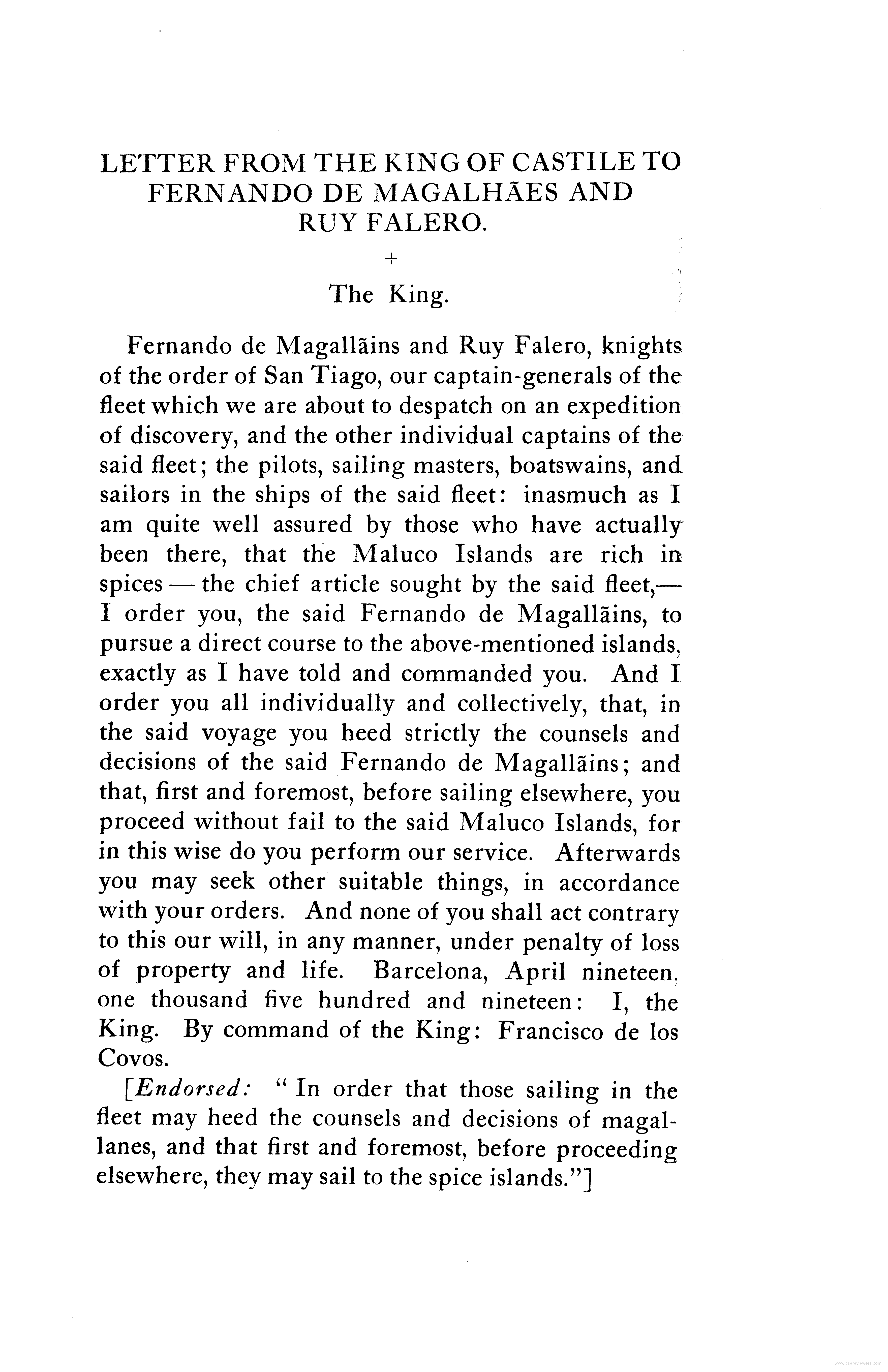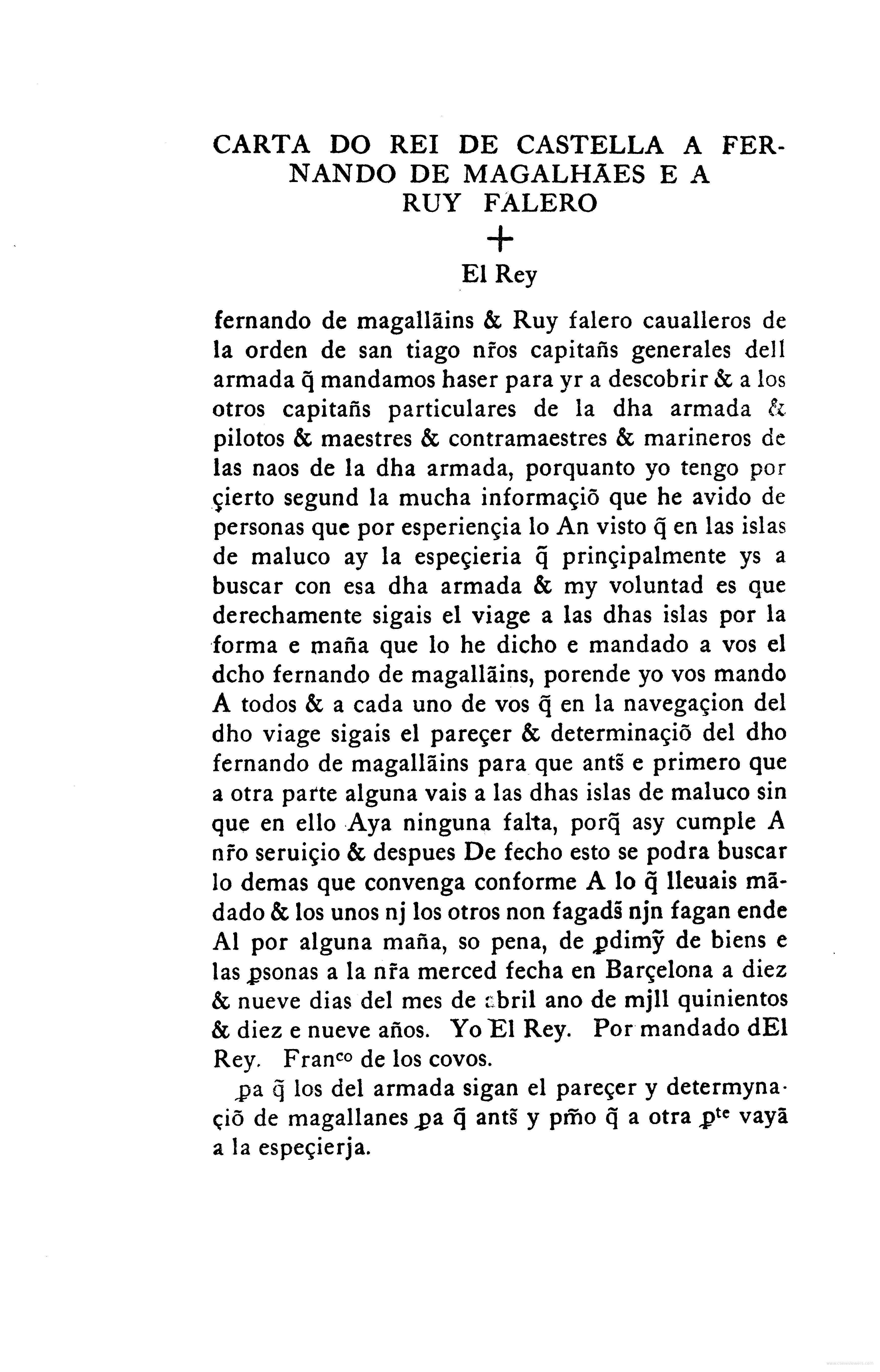 - Carta do rei de Castella a Fernando de Magalhaes e a Ruy Falero