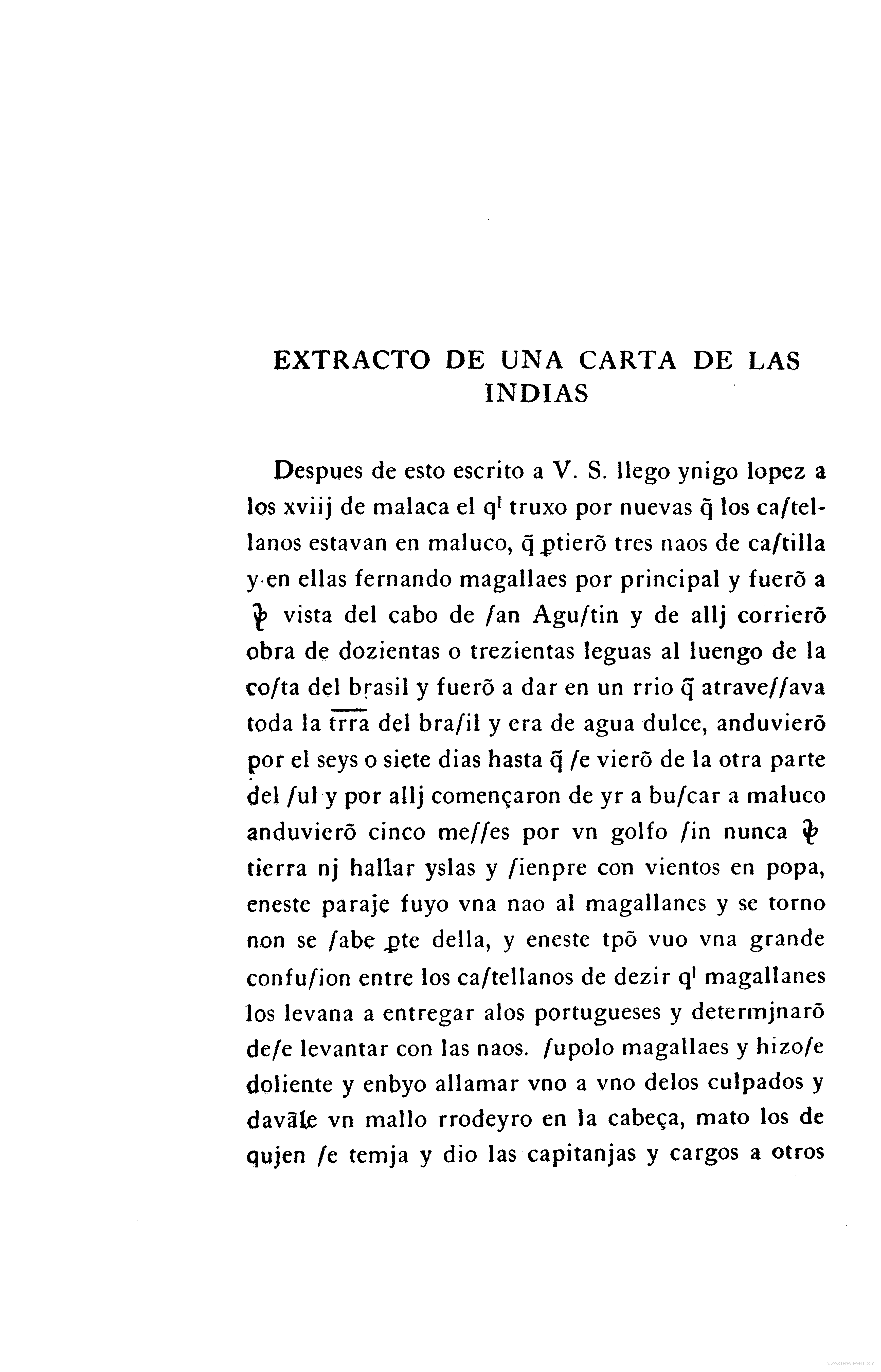 - Extracto de una carta de las Indias